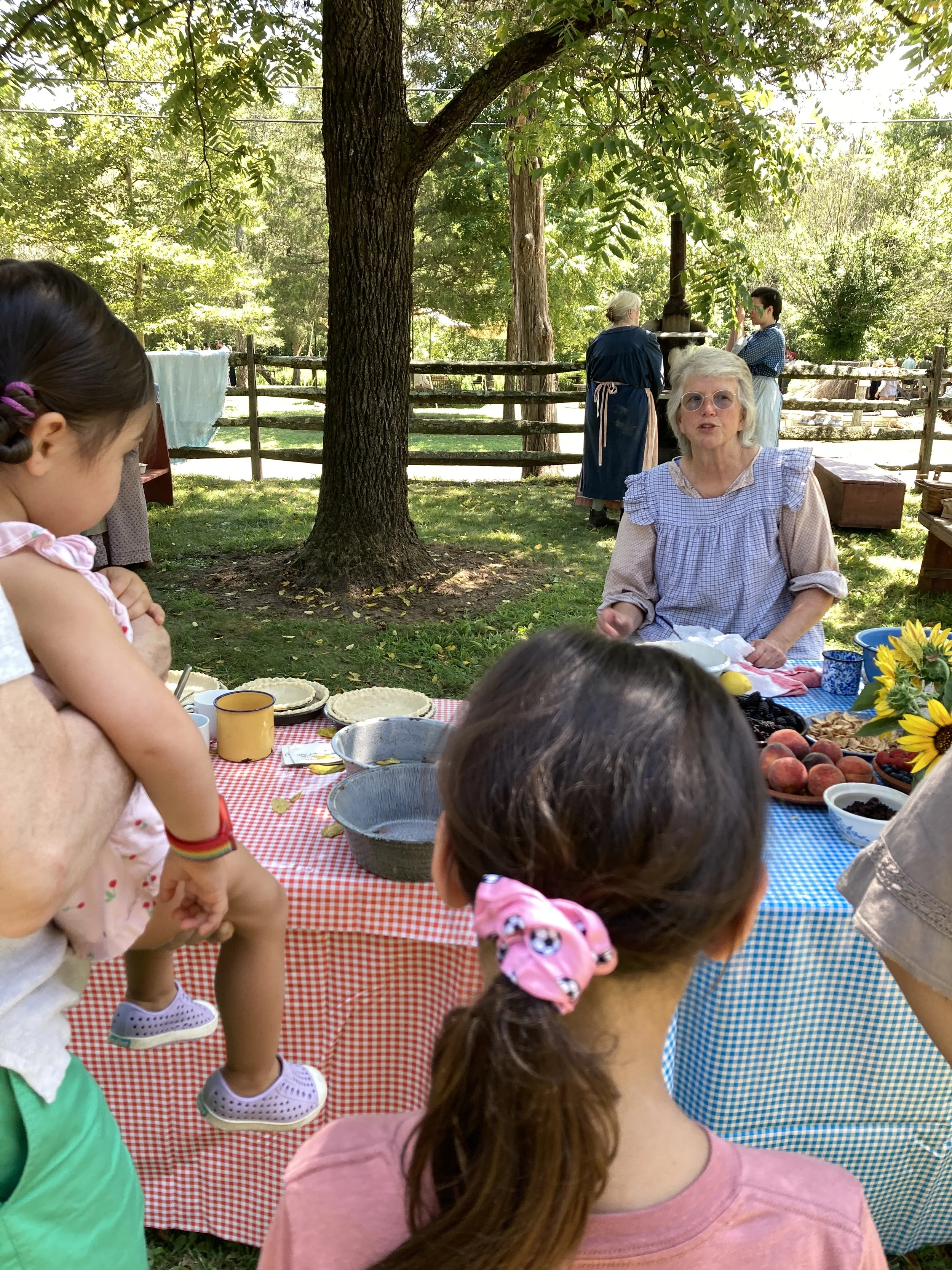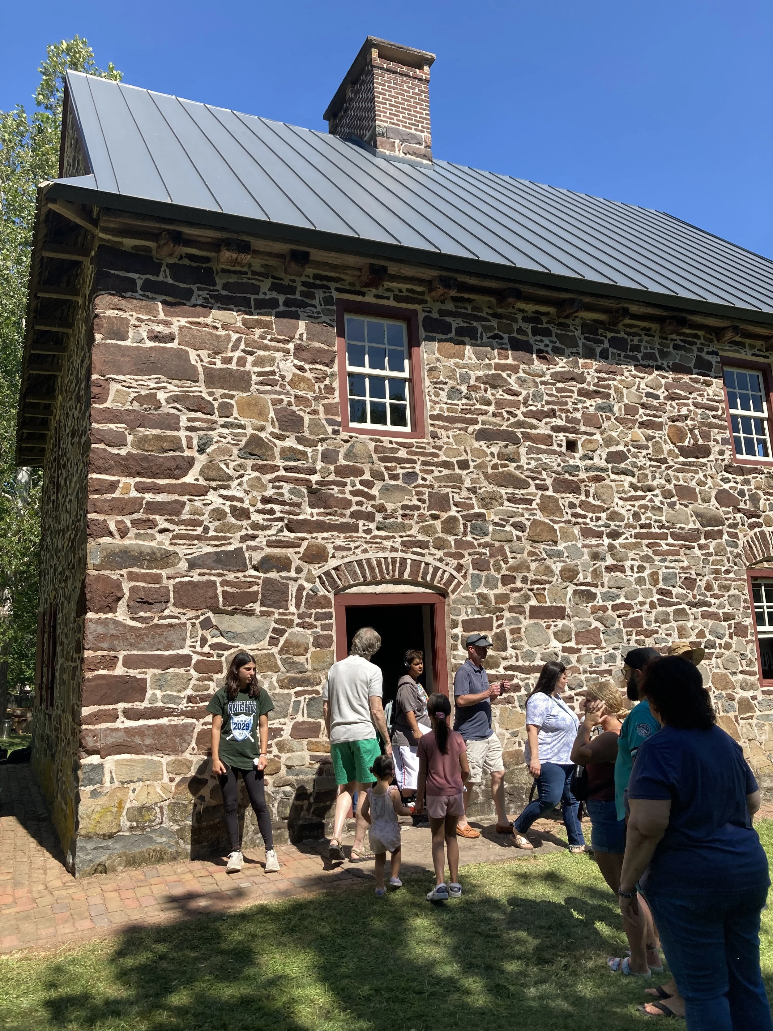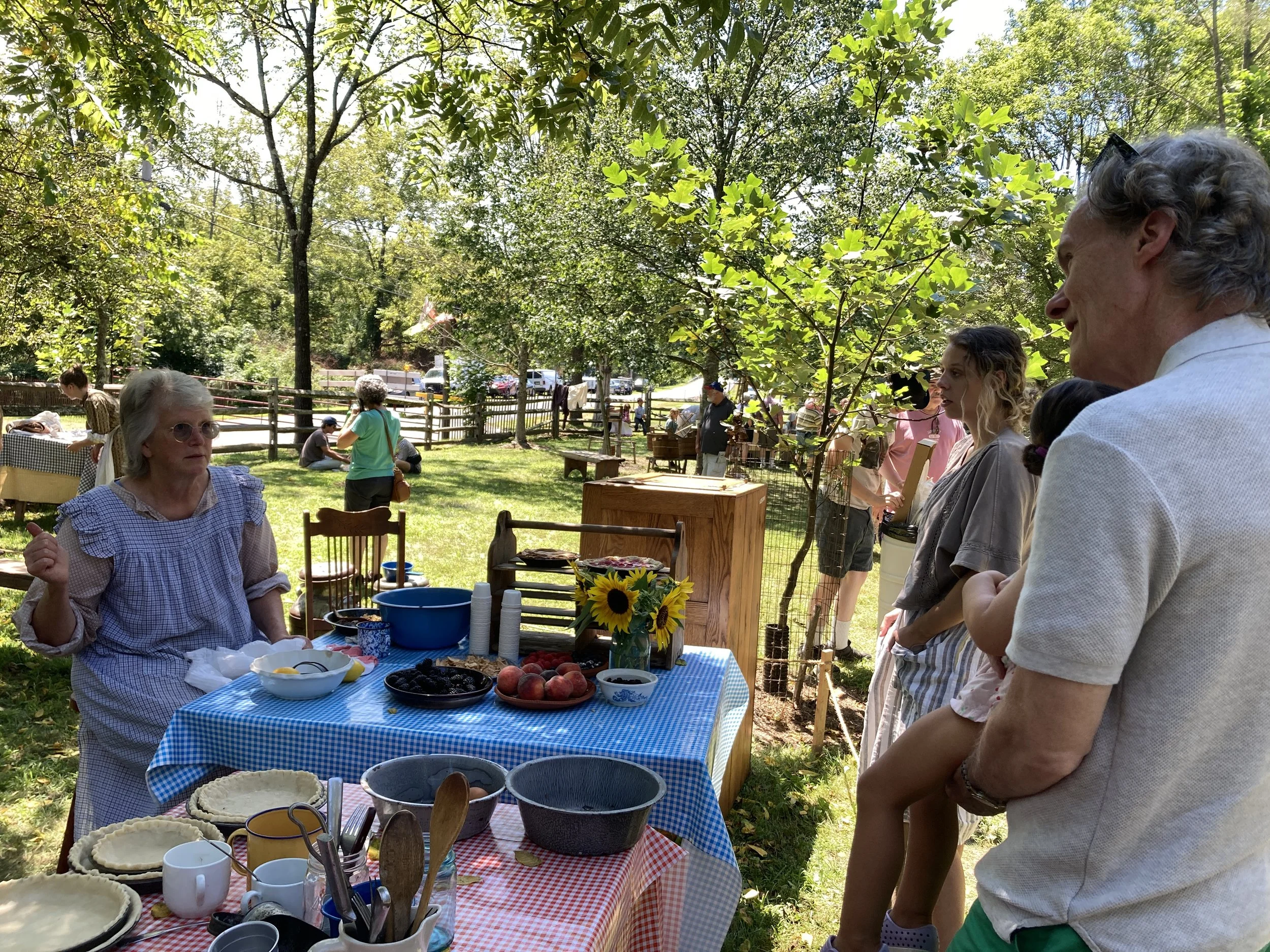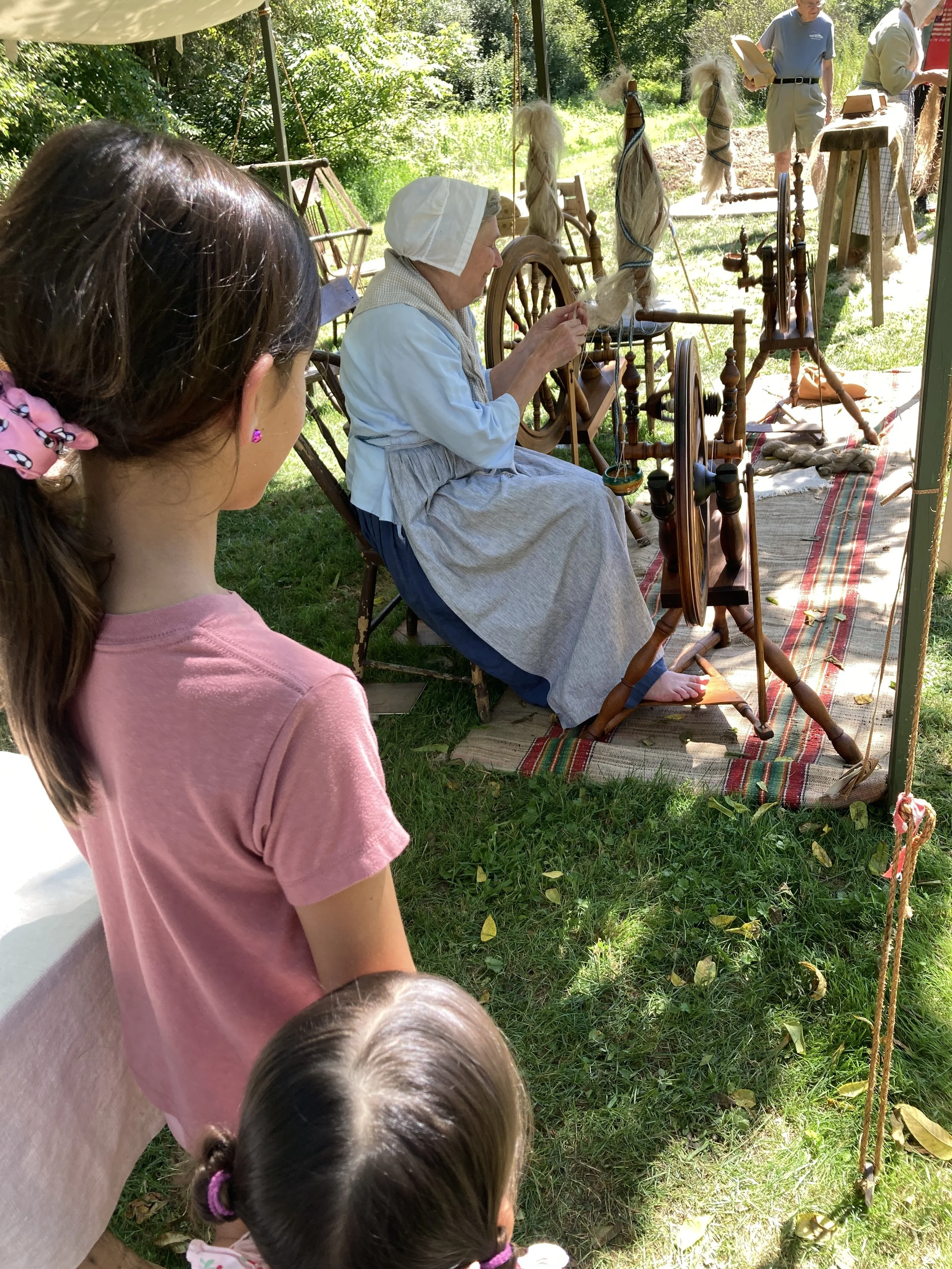 One of my absolute favorite annual events is the Goschenhoppen Folk Festival in Perkiomenville, PA. The festival is sponsored by the Goschenhoppen Historians, a group that preserves and celebrates 18th century German settler’s way of life. The authentic Pennsylvania Dutch traditions are demonstrated by devoted volunteers of all ages who study throughout the year and then present their findings to the public in traditional outfits with original equipment. The early work involved to persevere and survive in this region as it was colonized is mind boggling to me. And that is why, year after year, I return to remind myself what a privilege it is to live in modern times with so many conveniences. I used my cell phone to capture images of the event. This year, as a special treat for me, our granddaughters came with us and they were able to see for the first time how their ancestors lived. Our 9 year old was intrigued by the wood cutting. The 2 year old enjoyed the Henry Antes House. I encourage you to “get to know what good is” by visiting next August at 318 Colonial Rd Perkiomenville, PA