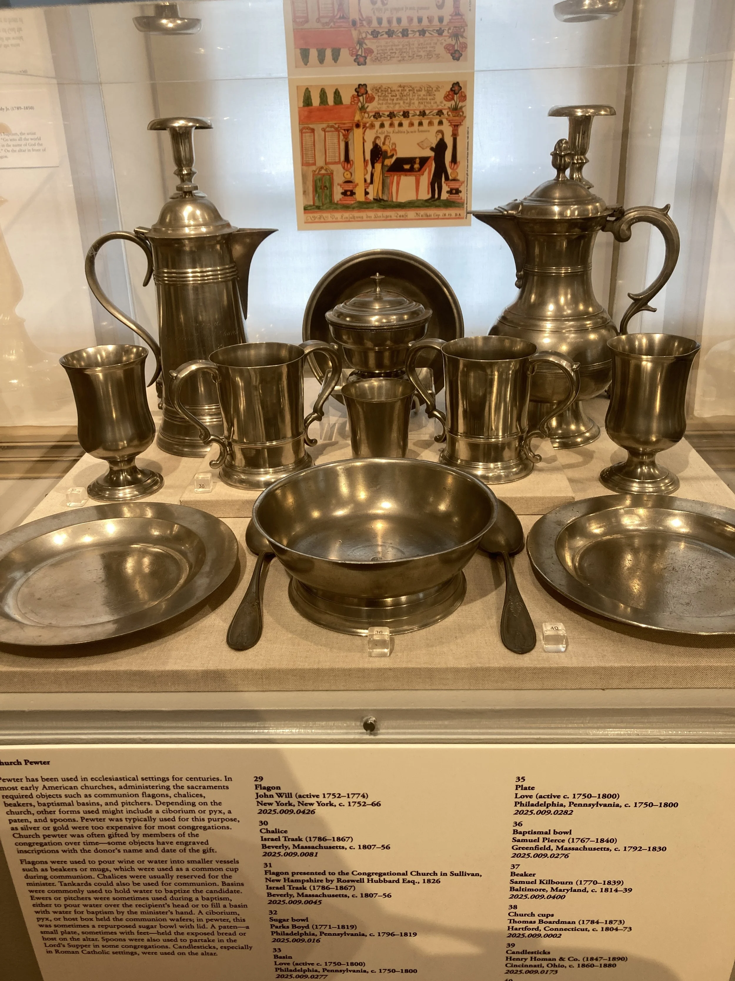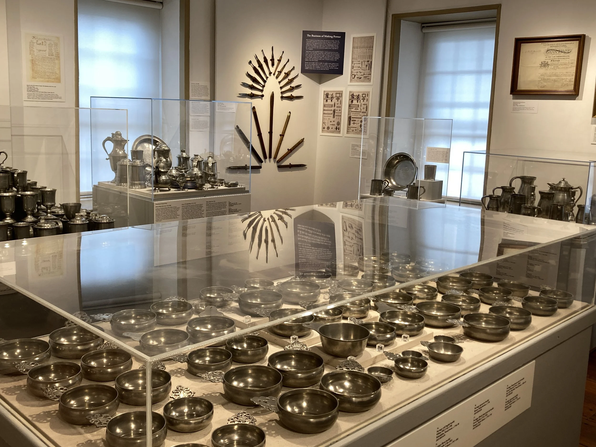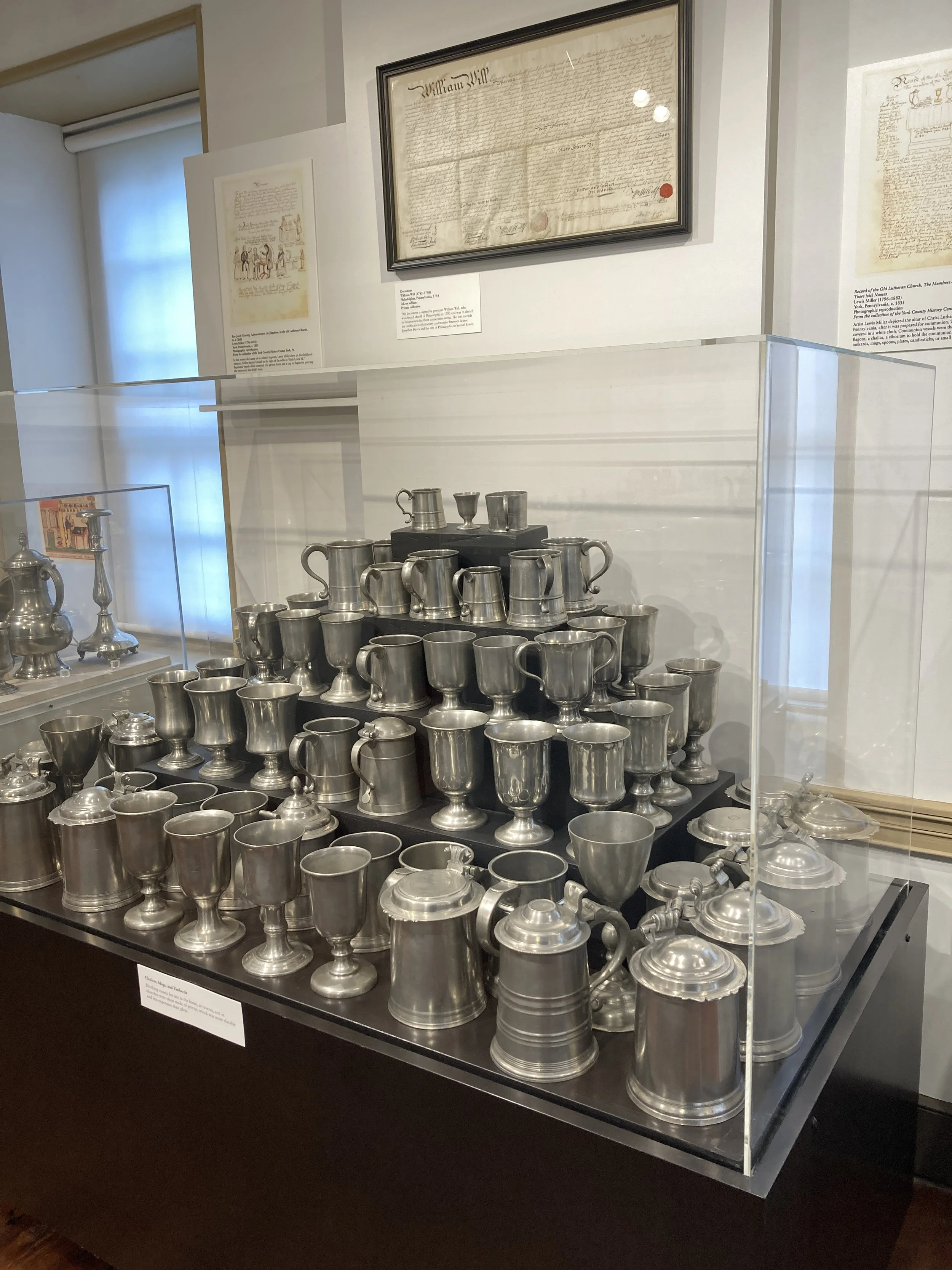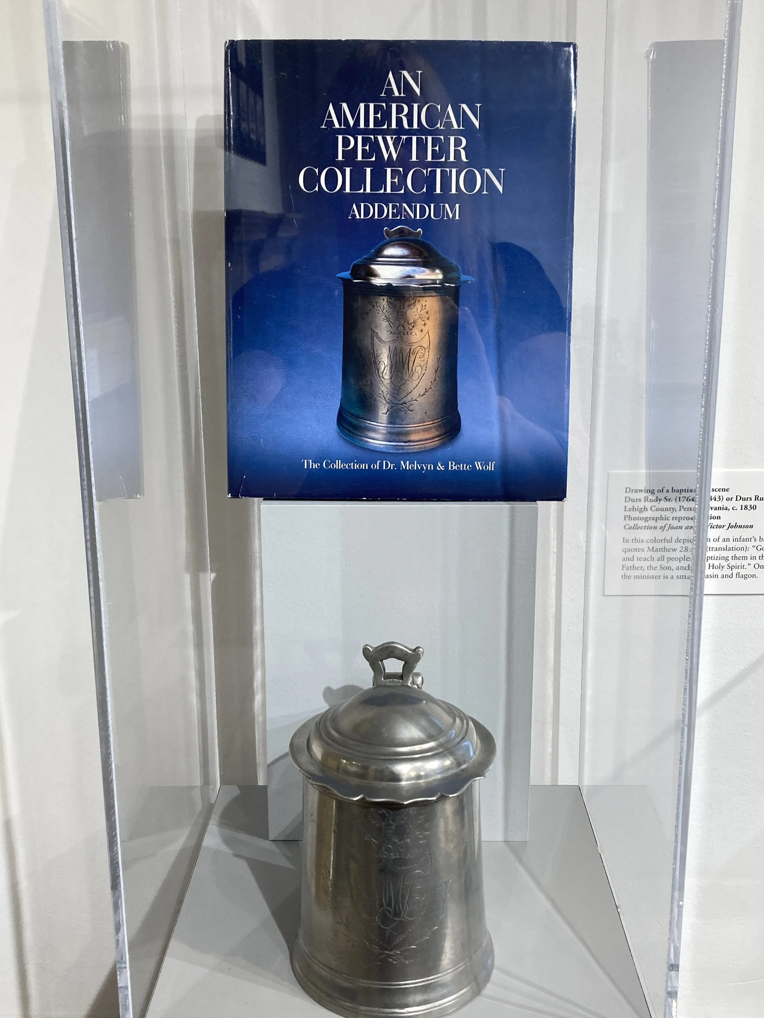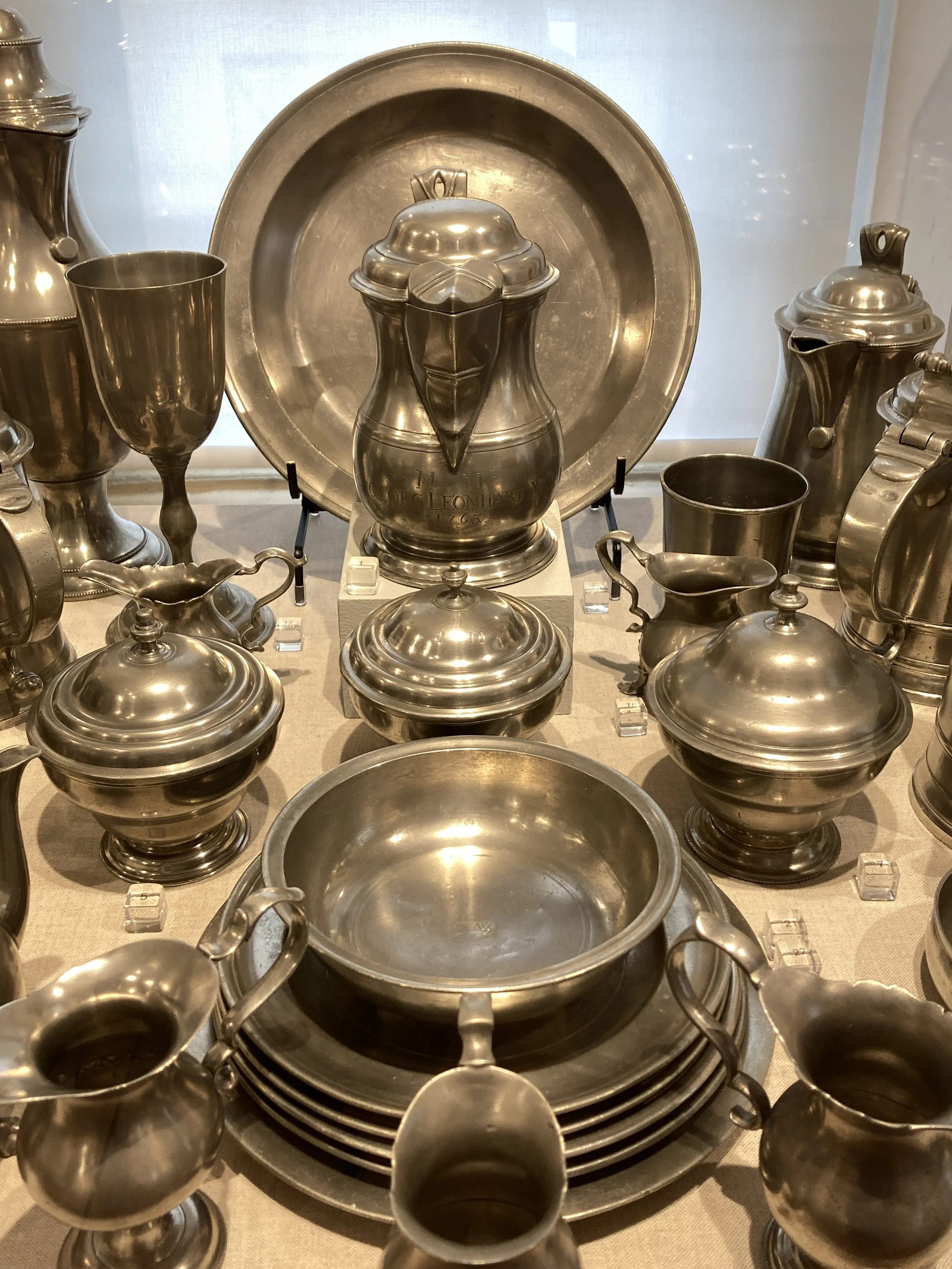 During Autumn 2025, Historic Trappe put on a stunning exhibition of the Pewter Collection of Dr. Melvyn and Bette Wolf. The collection, the largest known of its kind numbering over 450 pieces was gifted to Historic Trappe. It is a monumental and gracious donation. True to form, the exhibition at Trappe was thrilling and artistic with insightful information on the collection. Below are a few views from the exhibit.
