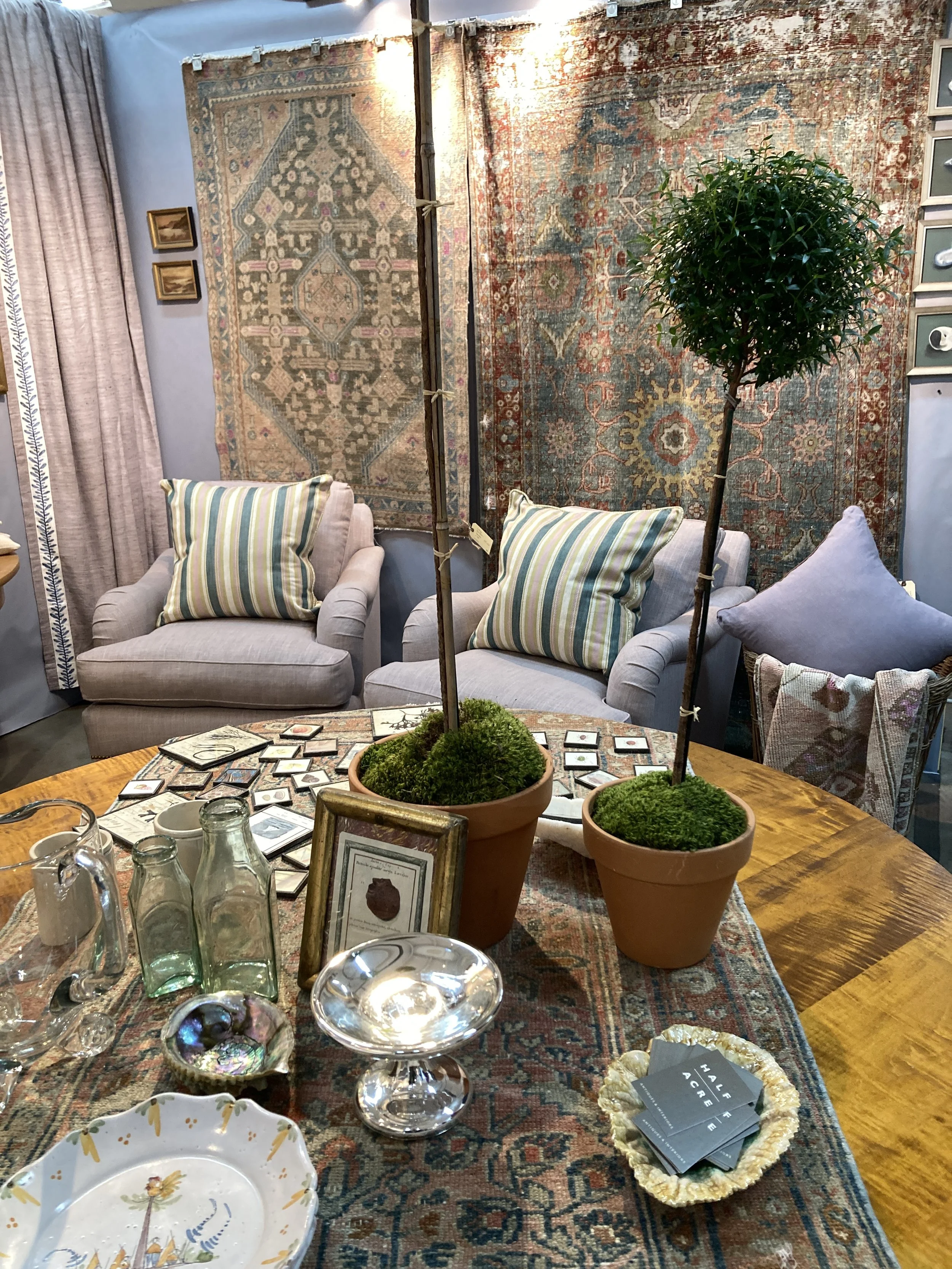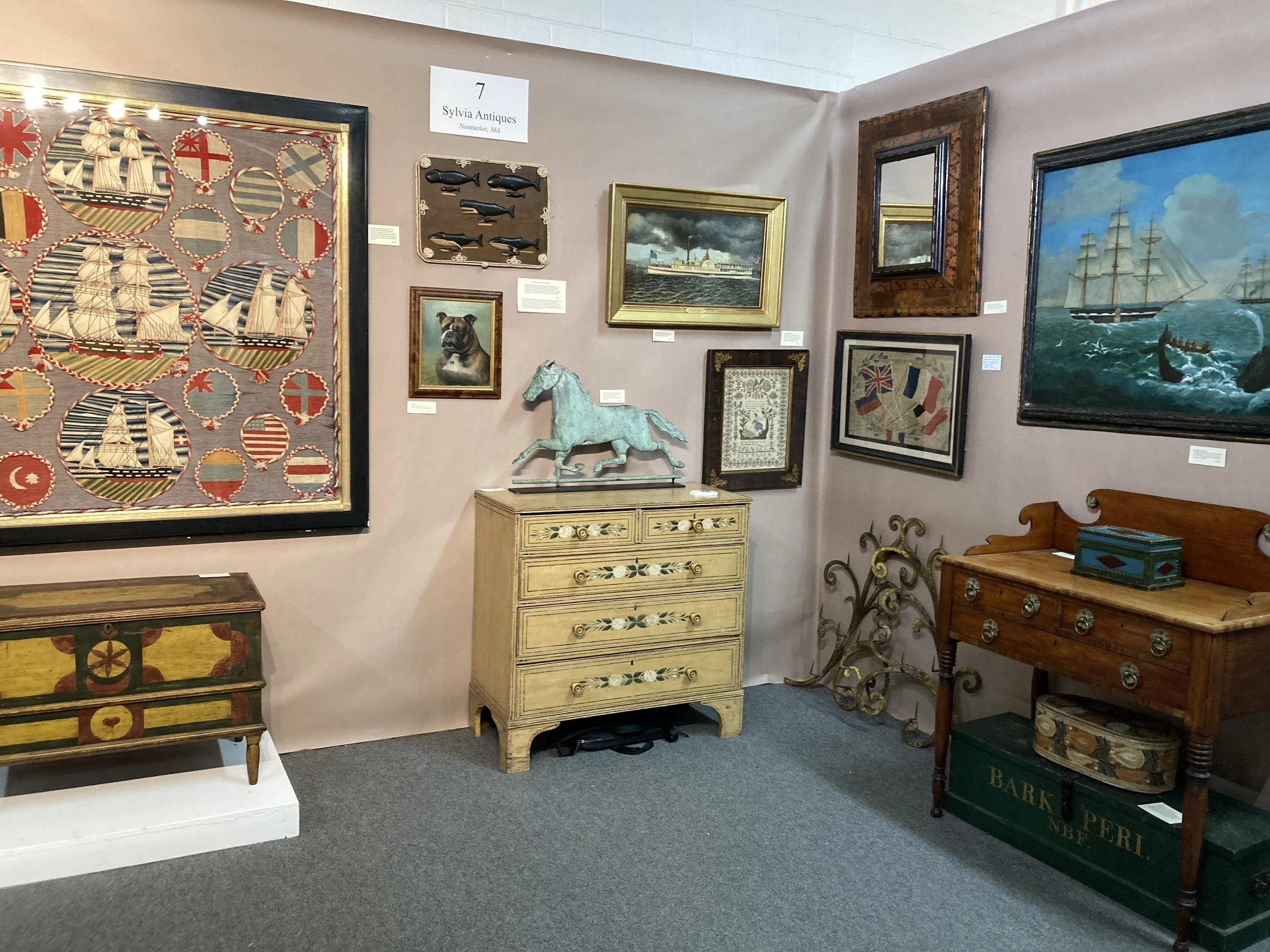 More fun awaits at the Spring Antiques Show in Rhinebeck, New York. 125 busy dealers brought something for everyone to their fully stocked booths. The large crowds attest to the popularity of this show. The demographic runs the gamut from young singles, parents with strollers, middle age couples (and singles) old timers ( like us) along with decorators of all ages and dealers. There is literally something for everyone. The atmosphere is festive and convivial. Below are a few standouts. However, I only walked the 3 large buildings twice. When I see photos from other sources who attended the Show, I realize how much I missed! The Spring Antiques Show is located at the Dutchess County Fairgrounds 6550 Rout 9 Rhinebeck, NY . Ample free parking and incredibly helpful shuttles.