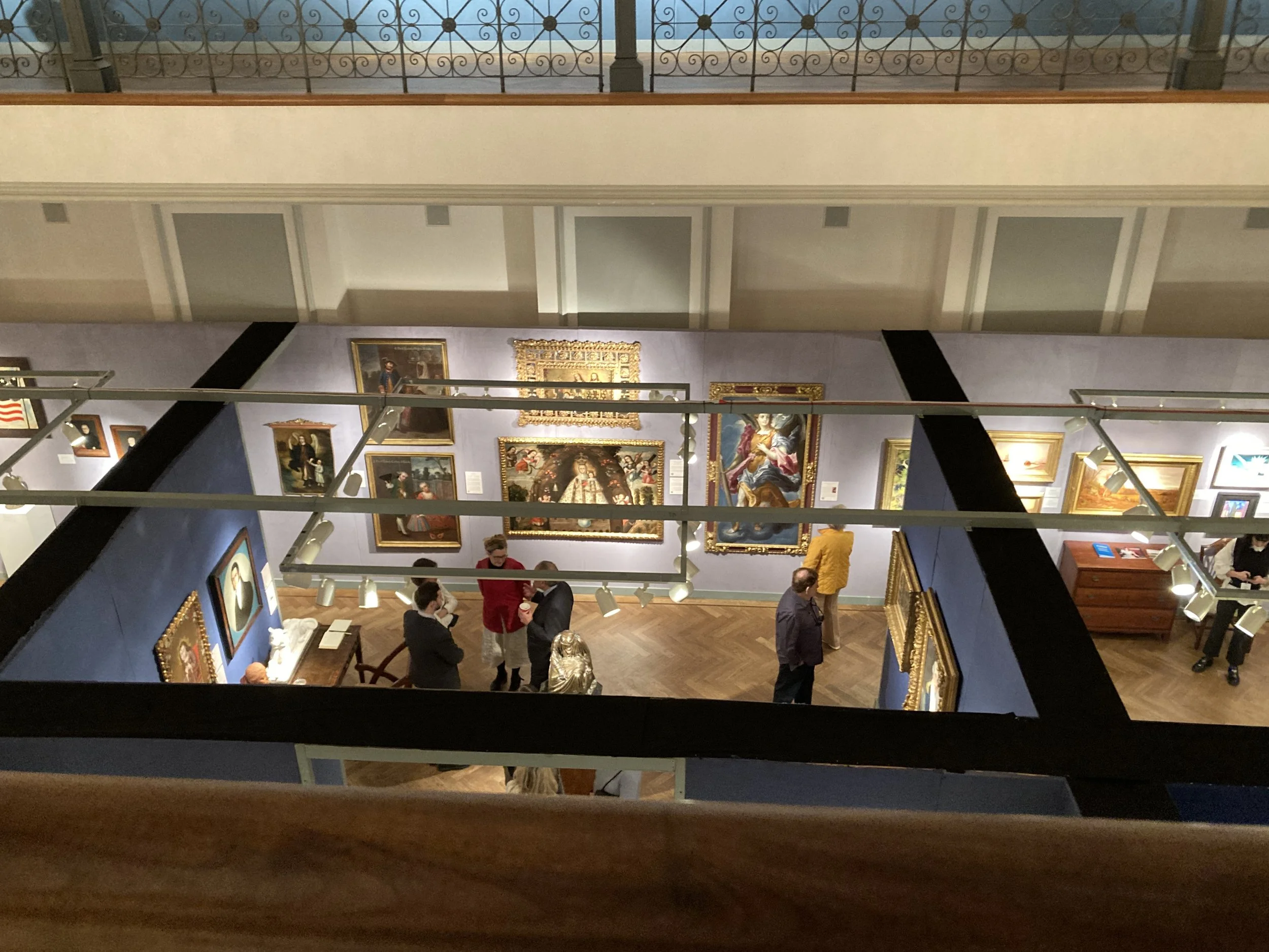 Here, Charlie is admiring a pair of Castas Paintings by Mexican artist Andres de Islas. The colors and details are captivating. Robert Simon Fine Art.