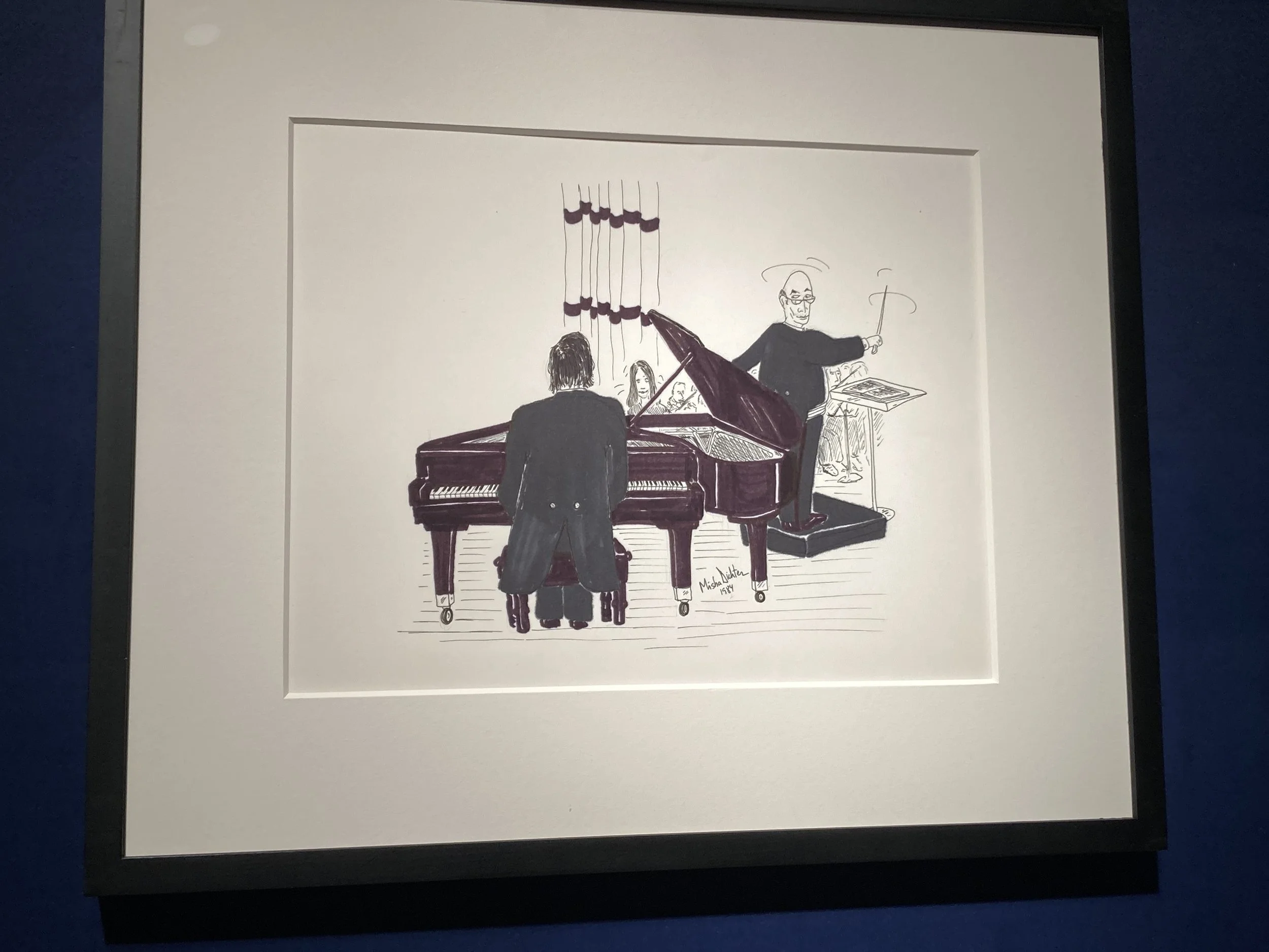 Musical whimsy struck a chord with me while viewing this drawing by Misha Dichter titled, “ Backstage at the Phil.” 1973. Bernard Goldberg Fine Arts. A wonderful catalog was available which featured Misha Dichter’s tongue in cheek musings of concert life.