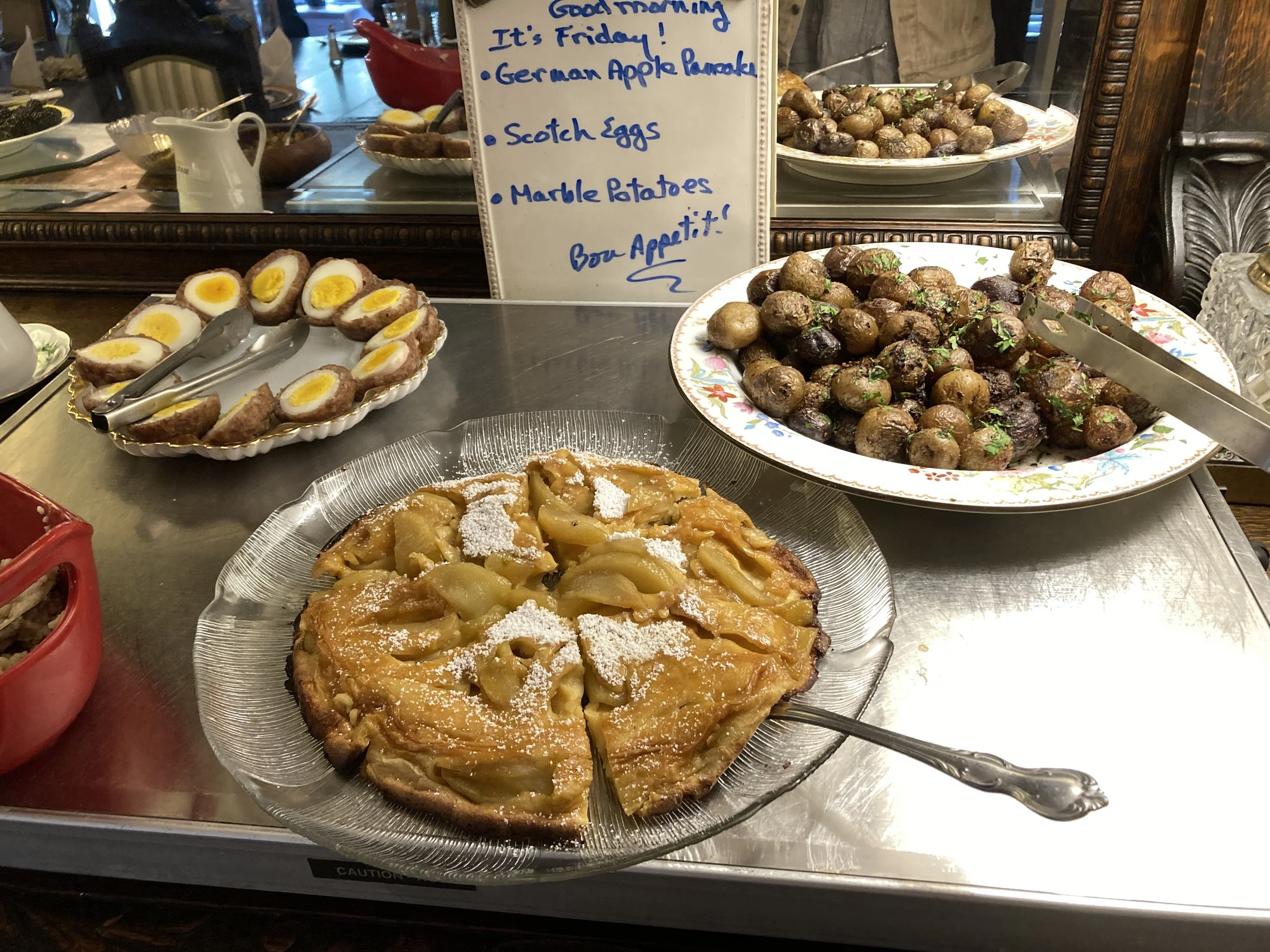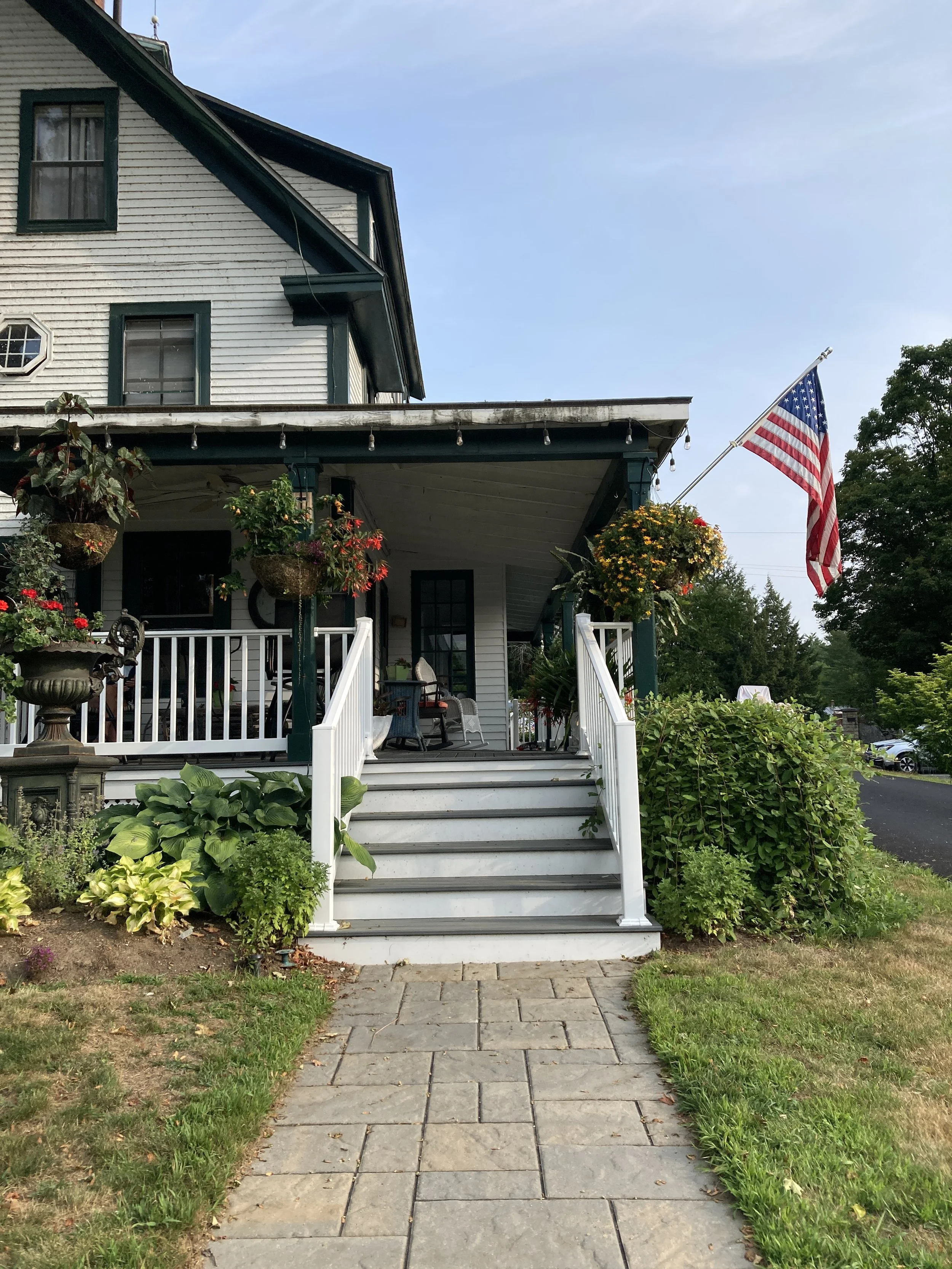 While we visited the antiques shows in Manchester, New Hampshire, we decided to make the trip even more interesting by staying at the Follansbee Inn in North Sutton. The inn is located beside Kezar Lake, which provides a beautiful and peaceful setting. The innkeepers, Denis and Kendall are welcoming yet not intrusive. The inn itself is large and accommodates the many visitors. What specifically drew me to the Follansbee Inn was the fact that I own 2 New England recipe books containing submissions from the inn. I was very curious to see this inn in person. The breakfasts are magnificent! They rival any Master Chef creations we have seen on TV. The breakfasts are served buffet style and there was plenty for all. I highly recommend this establishment for its marvelous breakfasts, convivial atmosphere, and peaceful surroundings. Travel time is a bit less than 1 hour to Manchester.