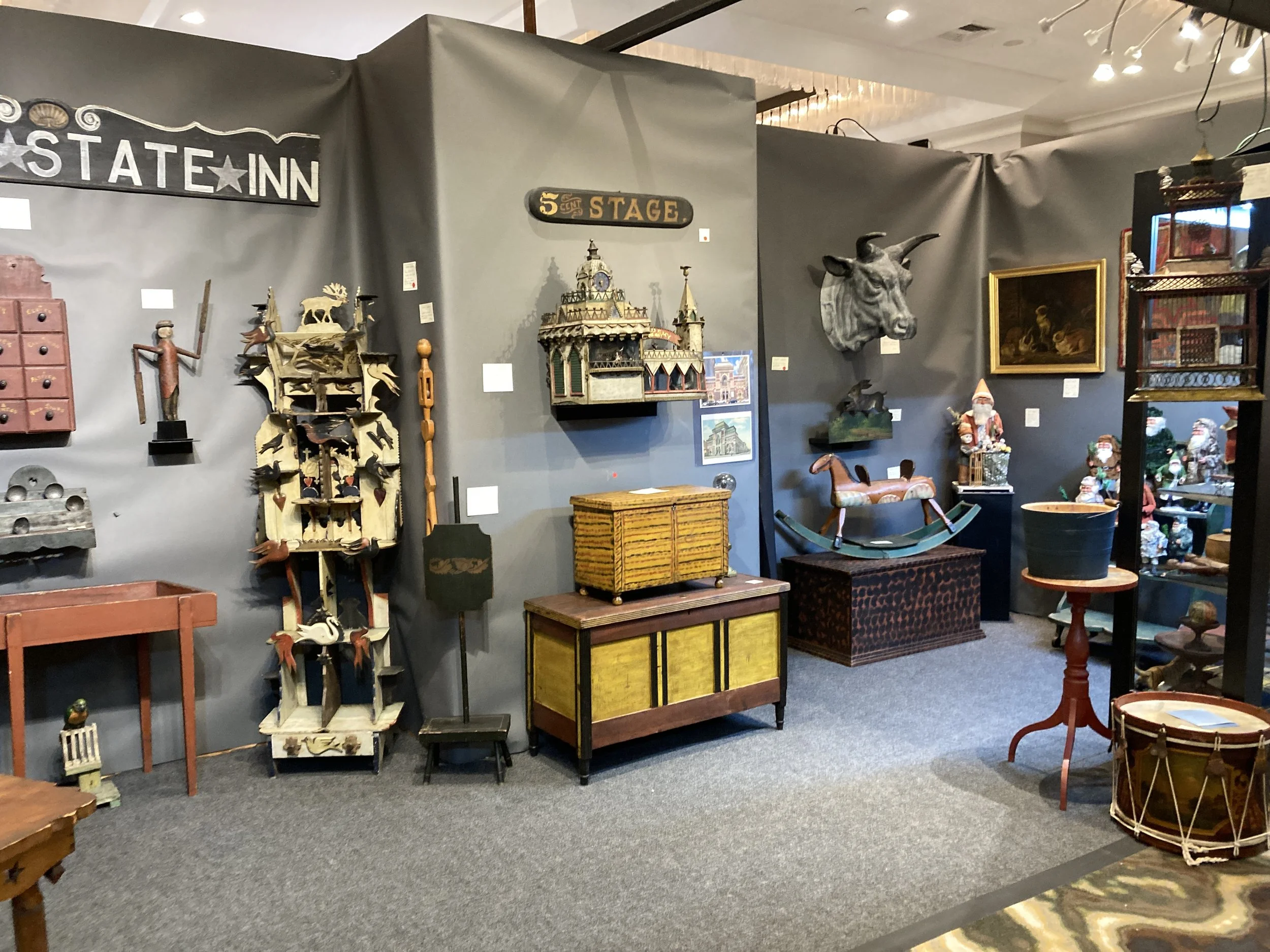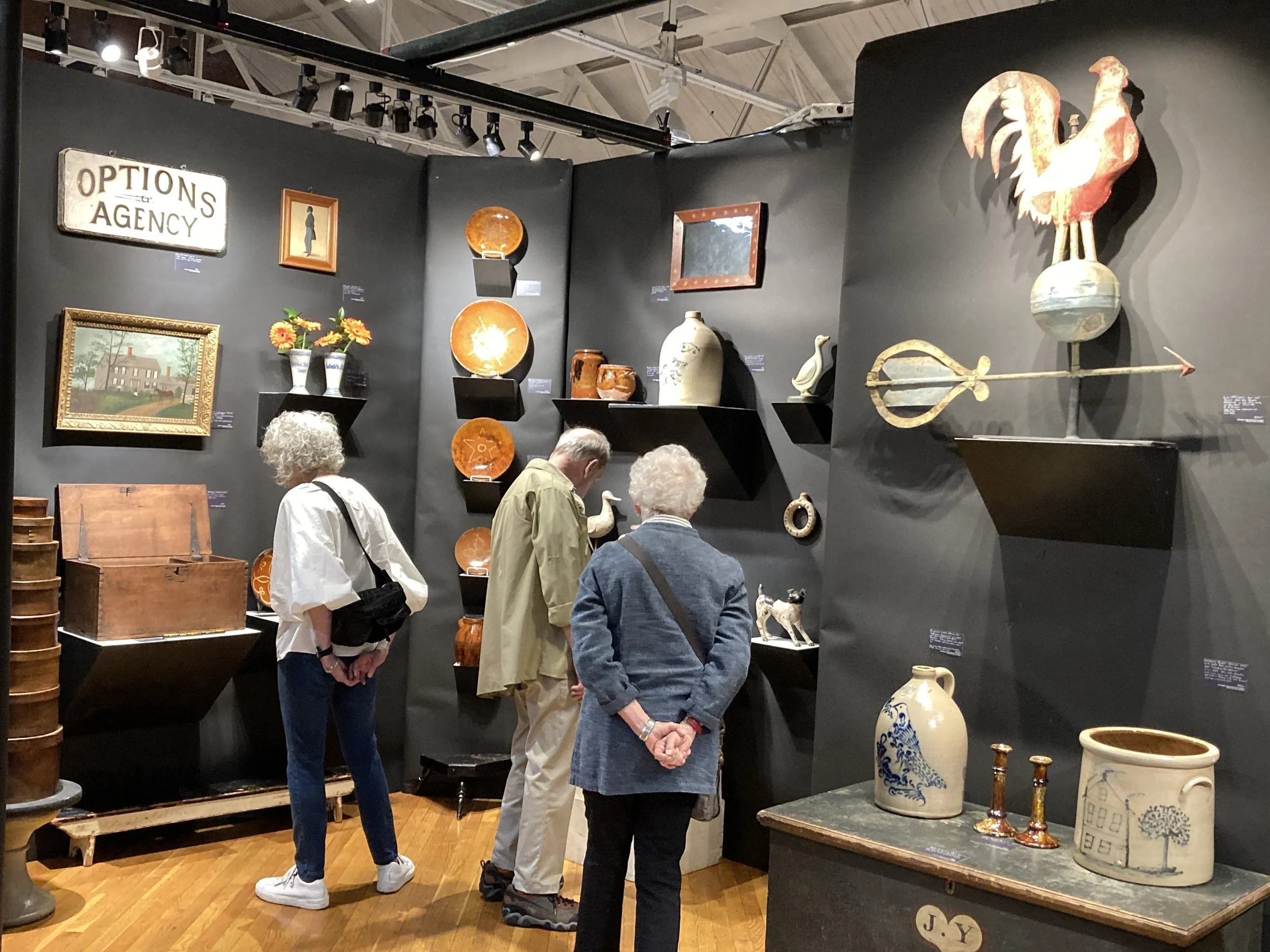 The second antiques show we visited during antiques week in Manchester was the New Hampshire Antiques Dealers Association Show. We arrived about an hour after opening and the hall was still quite packed. The booths were indeed spectacular and reminded us of the glory days at many other shows 20 years ago. I think the difference between then and now are the prices. There were lovely items that were affordable at the 2025 show which was good to see. There were many dealers at this show and the surging crowd made it difficult to access the booths. I was glad that antiques are still popular. Below is a sample of some of the dealers there.