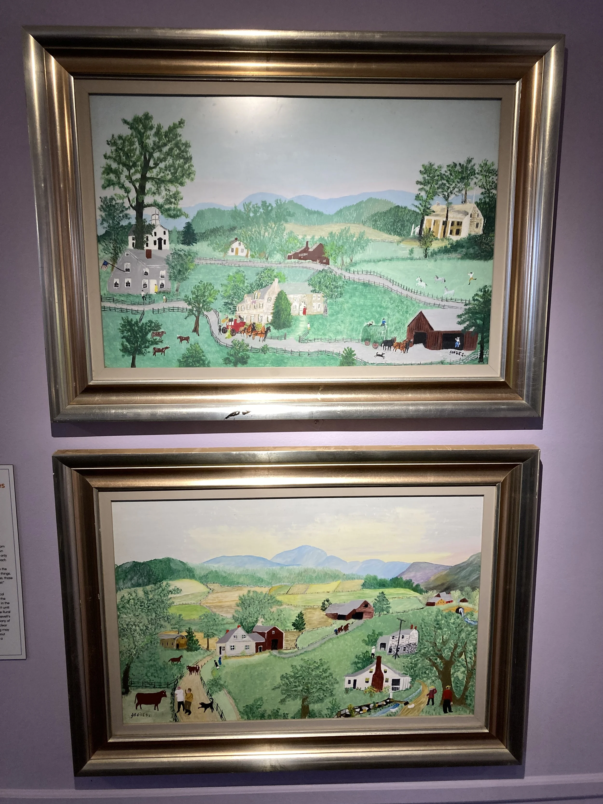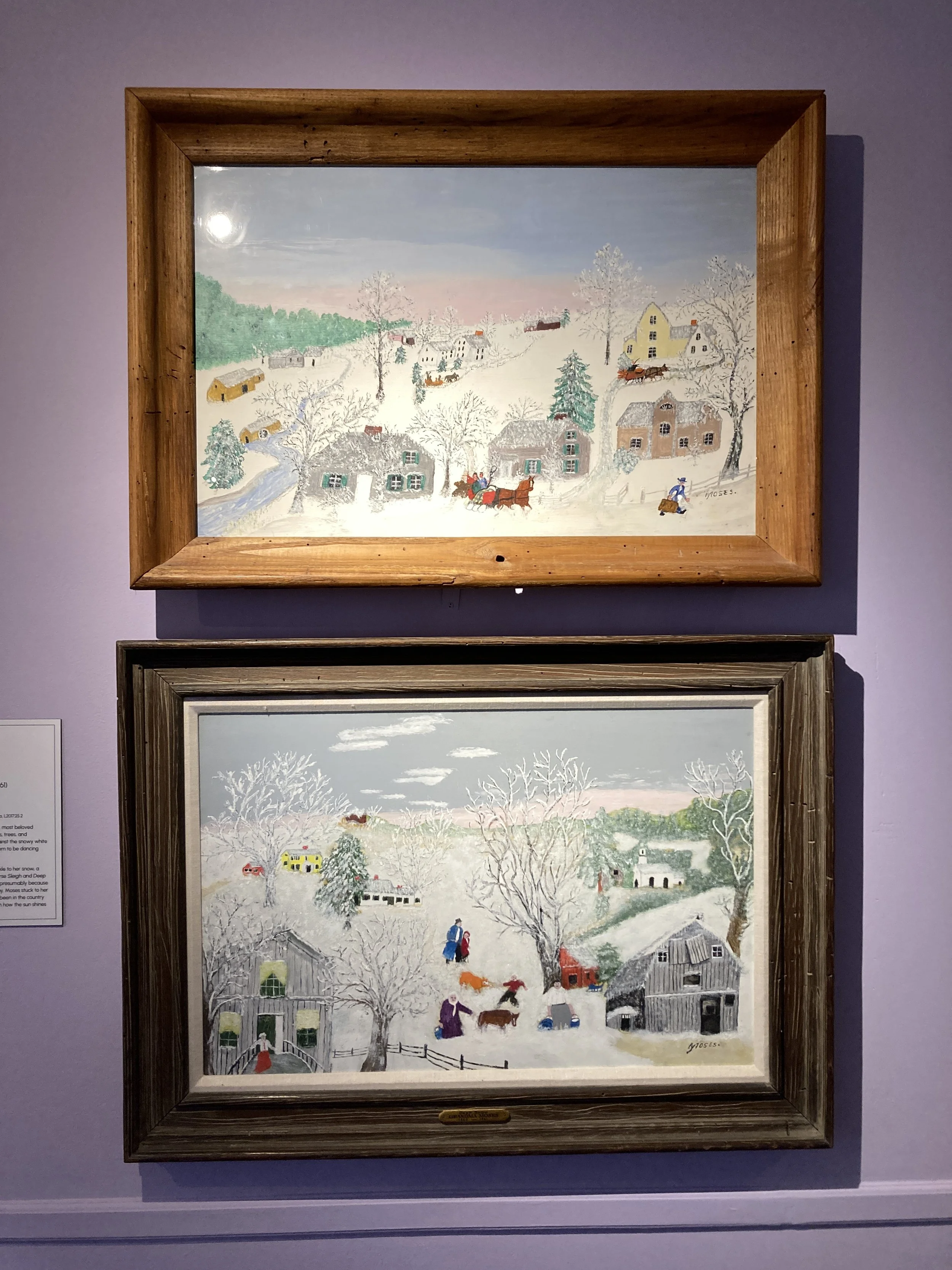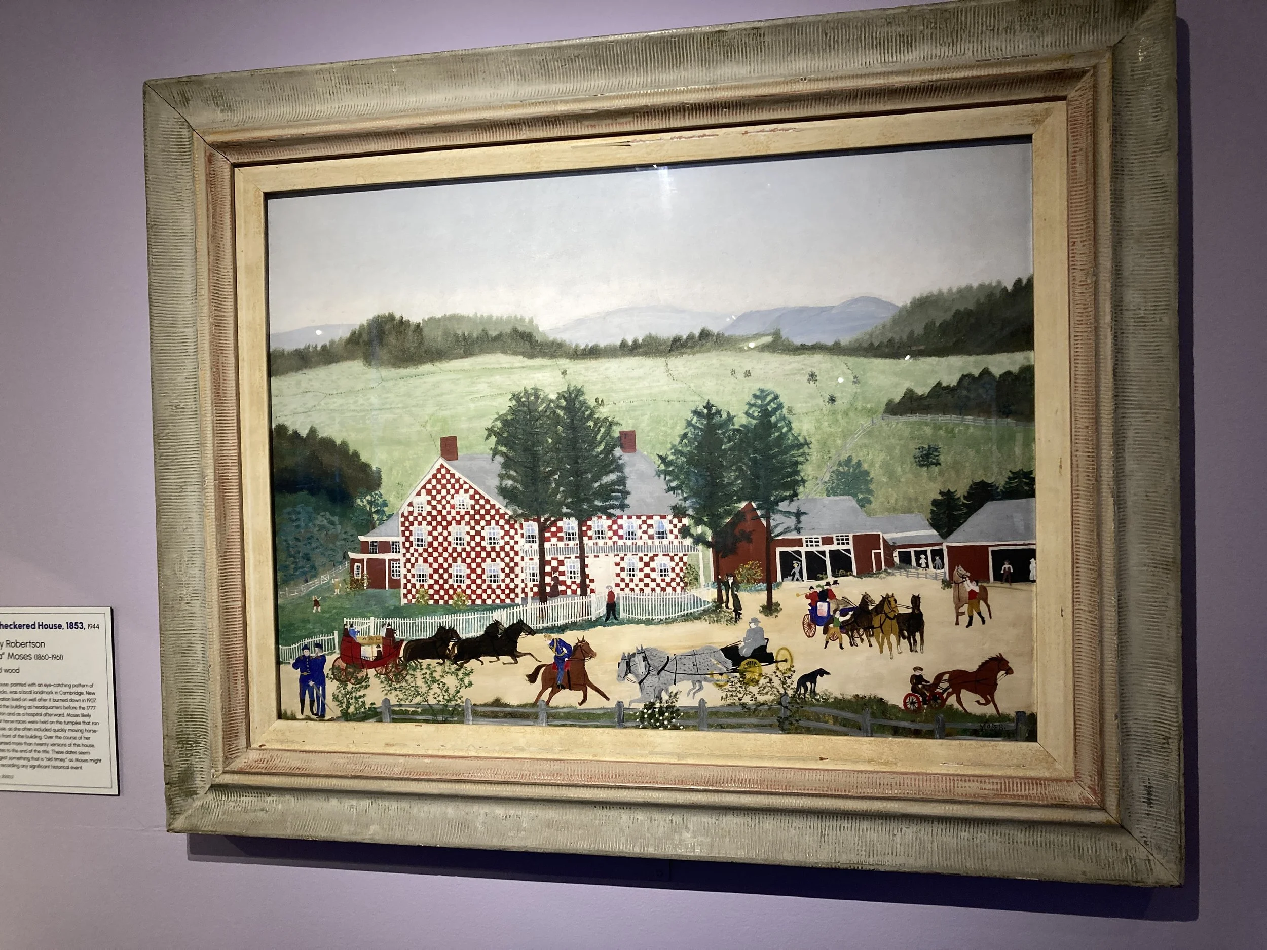 One of my favorite museum exhibitions is the Grandma Moses room at the Bennington Museum in Vermont. The space is filled with work by Anna Mary Robertson aka Grandma Moses who was a popular self taught artist back in the 1950’s & 60’s. She began painting quite late in life and featured her memories and life as she knew it. The Grandma Moses exhibition is well documented and definitely worth a visit. Btw, the rest of the museum is excellent, too.