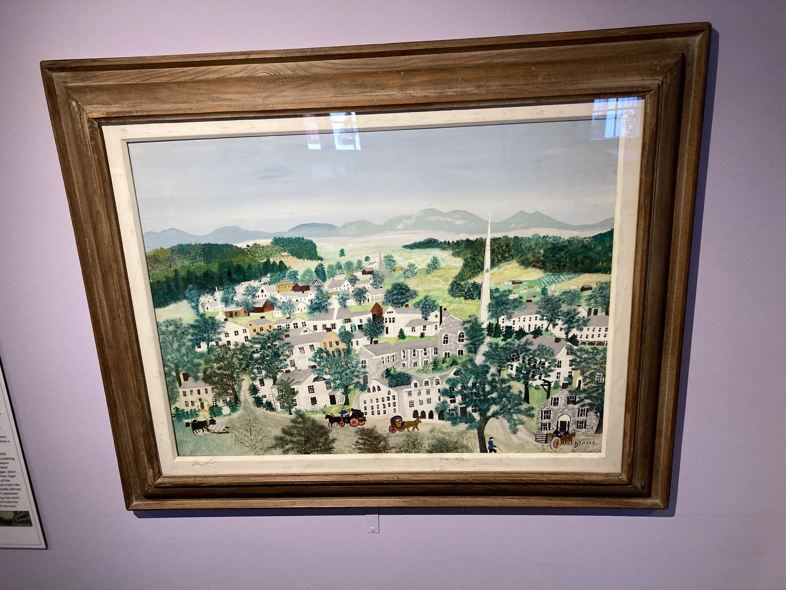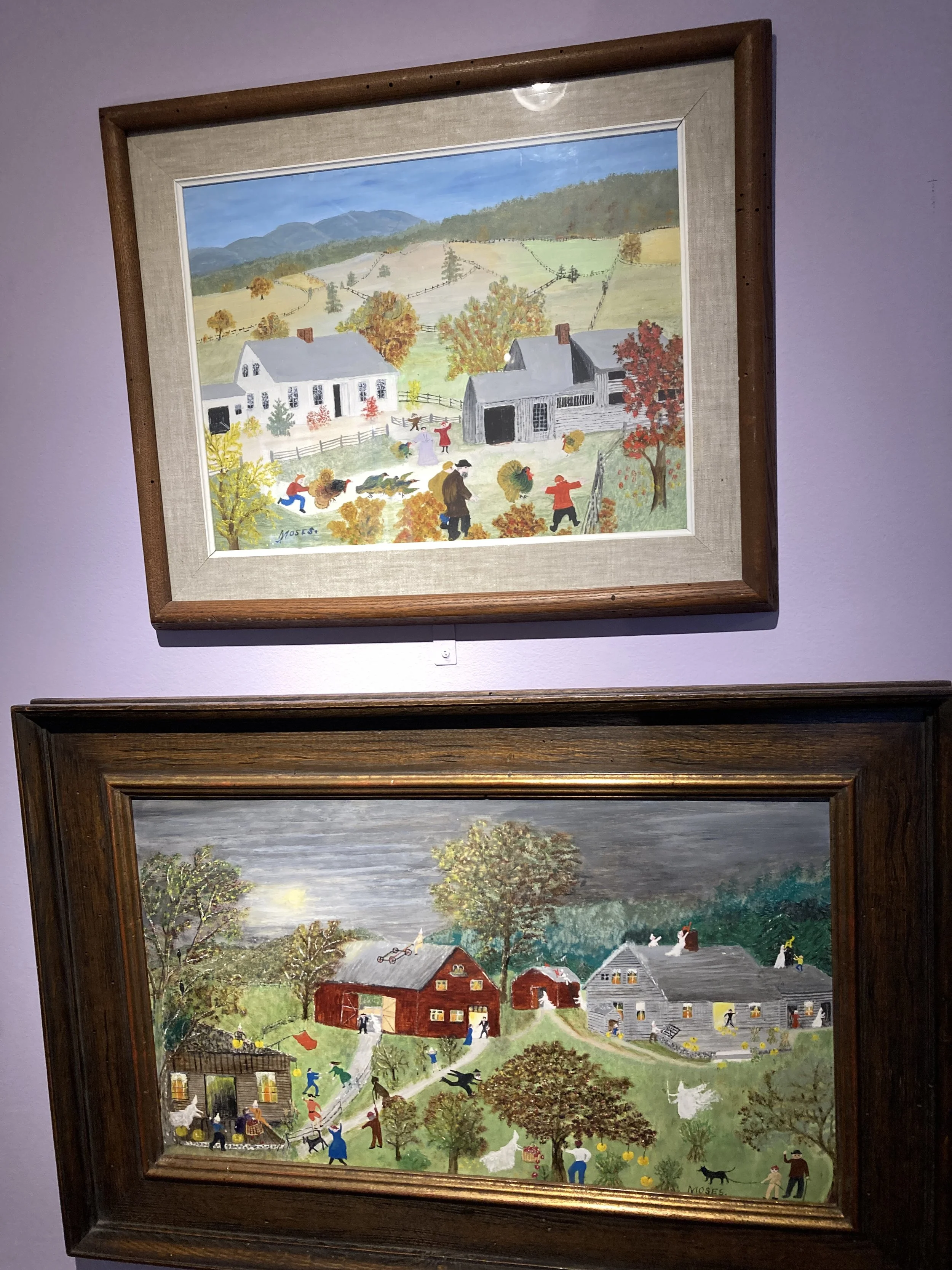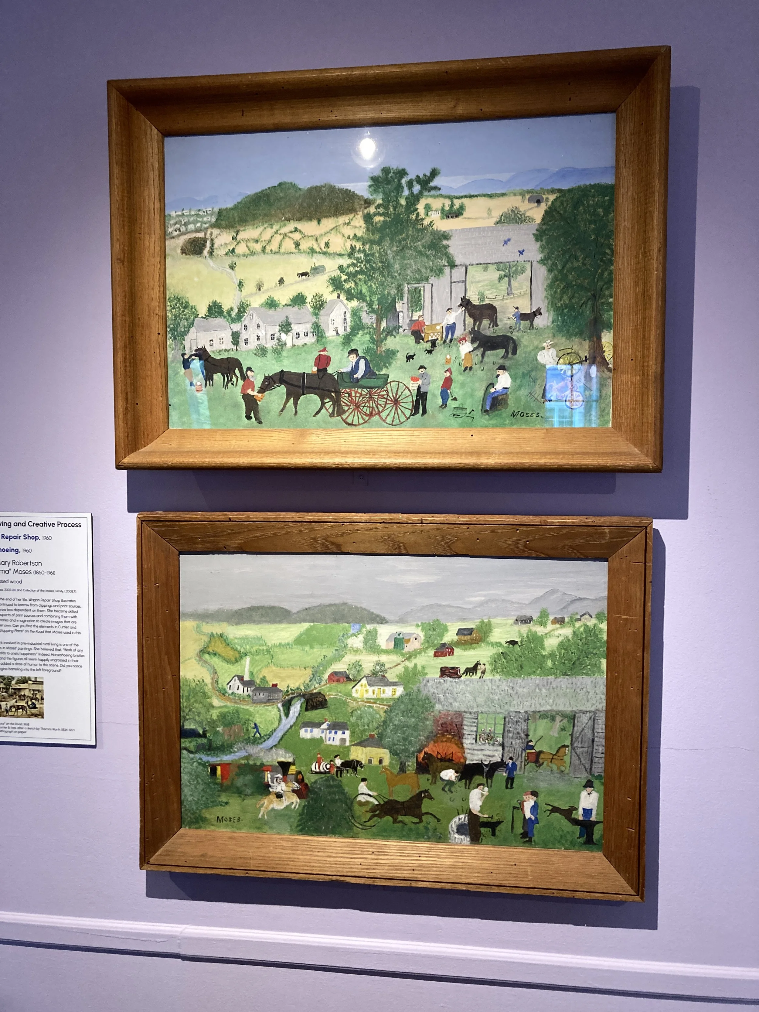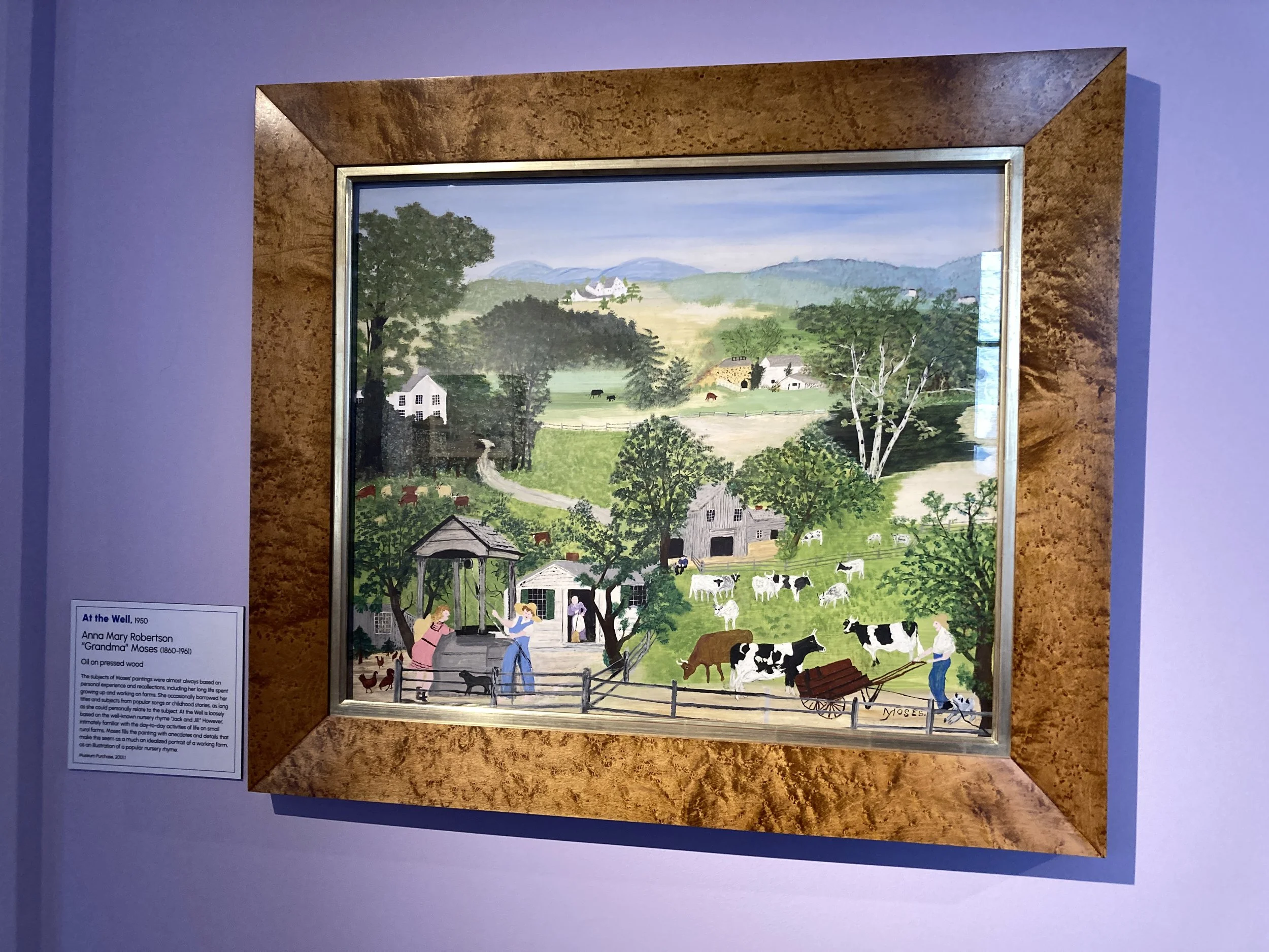 One of my favorite museum exhibitions is the Grandma Moses room at the Bennington Museum in Vermont. The space is filled with work by Anna Mary Robertson aka Grandma Moses who was a popular self taught artist back in the 1950’s & 60’s. She began painting quite late in life and featured her memories and life as she knew it. The Grandma Moses exhibition is well documented and definitely worth a visit. Btw, the rest of the museum is excellent, too.